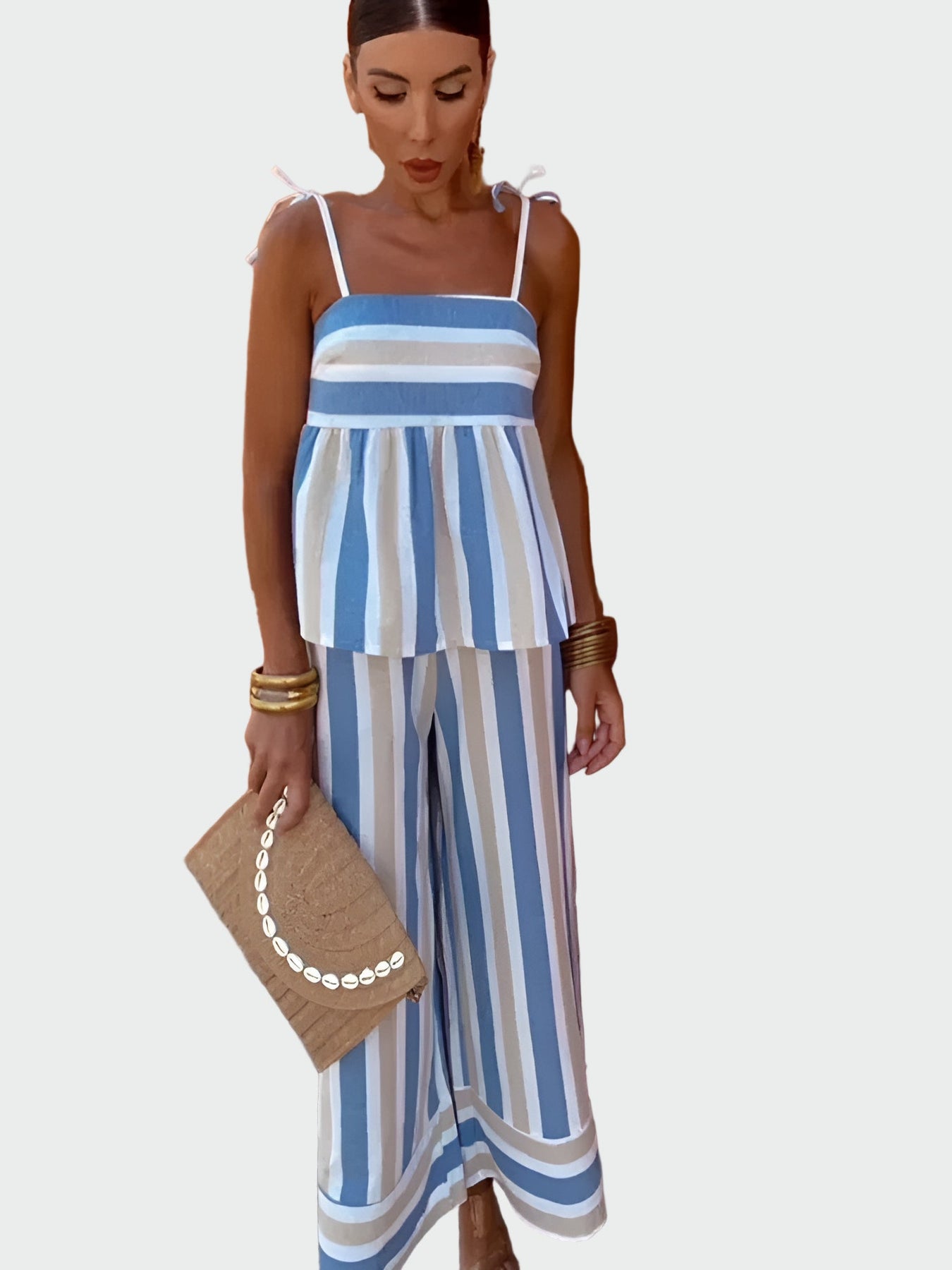 - Suunnittelu: Kaksiosainen setti, jossa rento ja tyylikäs linja