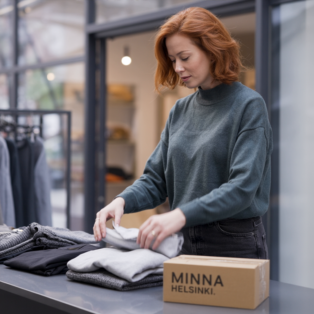 Hei, olen Minna Heikkinen. Olen jo 12 vuoden ajan suunnitellut rakkaudella vaatteita, jotka auttavat naisia ja miehiä tuntemaan olonsa varmaksi ja kauniiksi.